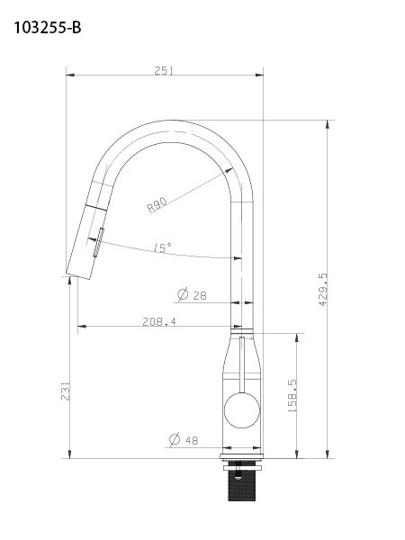 Pull-Down-Armaturen haben in der Regel einen hohen Bogenhahn und multifunktionale Sprühköpfe, die sie für das Befüllen größerer Töpfe, Pfannen und Wasserflaschen geeignet machen; sie gelten als ergonomischer, da sie mit einer sanften Abwärtsbewegung ohne Verdrehen und Ziehen des Schlauchs auf eine andere Seite verwendet werden.