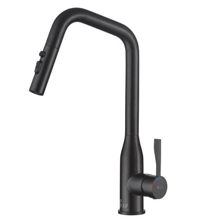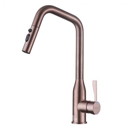 Pull-Down-Armaturen haben in der Regel einen hohen Bogenhahn und multifunktionale Sprühköpfe, die sie für das Befüllen größerer Töpfe, Pfannen und Wasserflaschen geeignet machen; sie gelten als ergonomischer, da sie mit einer sanften Abwärtsbewegung ohne Verdrehen und Ziehen des Schlauchs auf eine andere Seite verwendet werden.